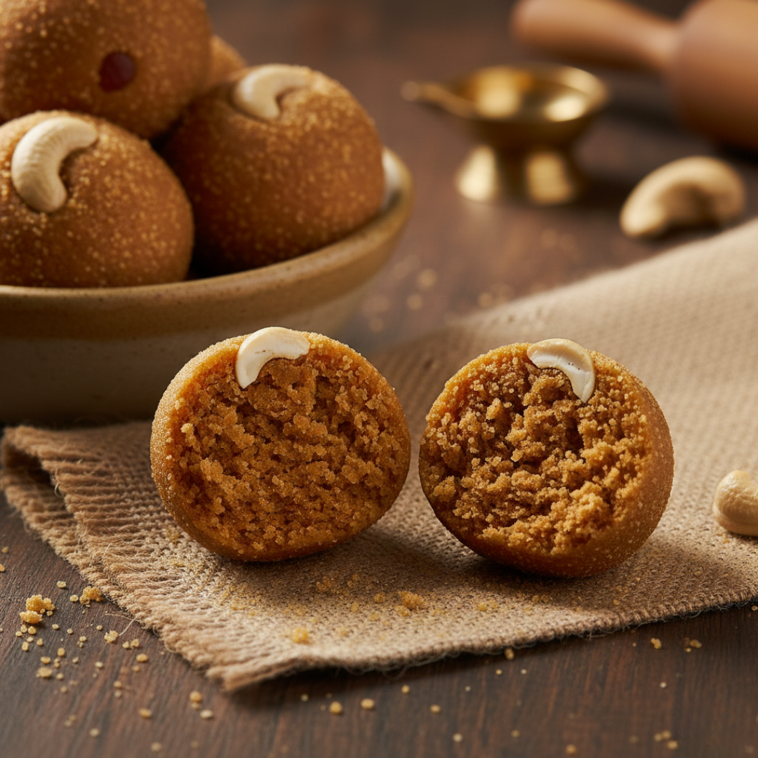 Our Artisan Kaju Delight is made from the finest cashew kernels, carefully ground or processed to retain their natural richness. The cashew paste is skillfully cooked with pure jaggery, and gently bound with a hint of ghee to give a soft, velvety texture that melts in your mouth. No artificial additives, no preservatives — just honest, high‑quality ingredients.
