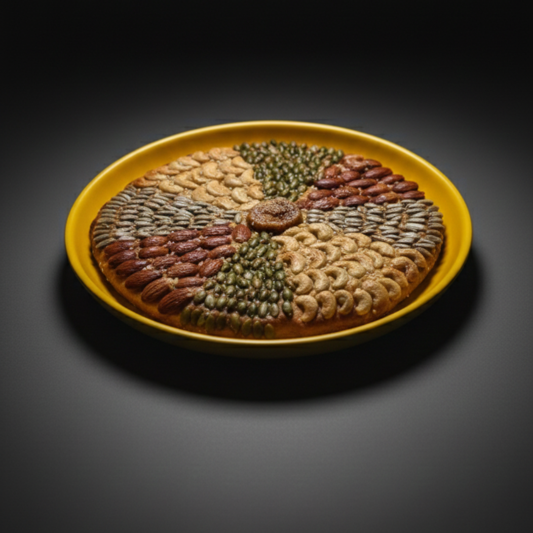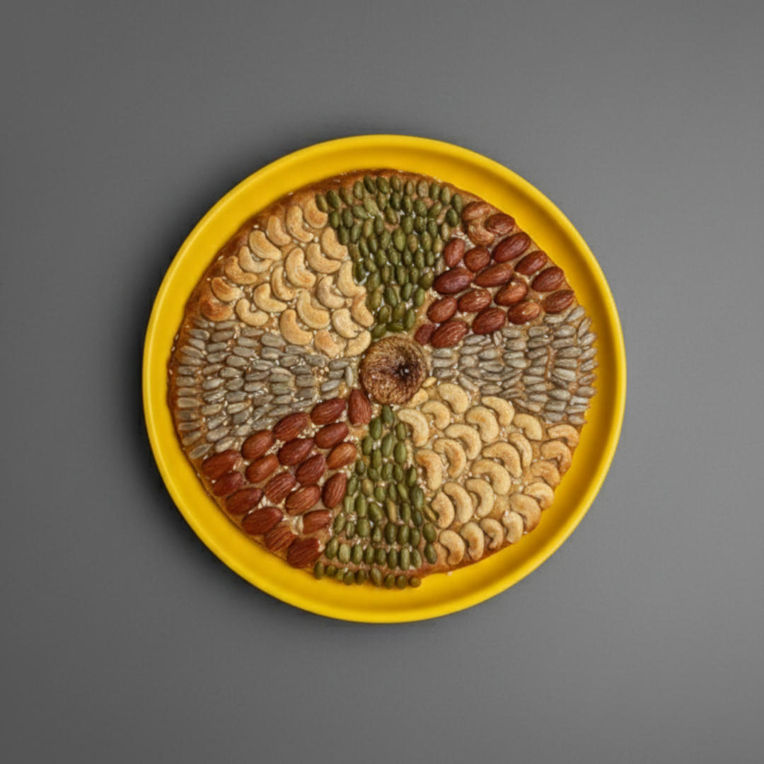 Our Shahi Dry‑Fruit Sheermal is a regal delicacy inspired by classic Awadhi and Mughlai flavors. Each Sheermal is hand‑crafted with care — slow-baked to perfection, brushed lightly for richness, and adorned with an elegant mosaic of almonds, cashews, pistachios, sunflower seeds, and pumpkin seeds.