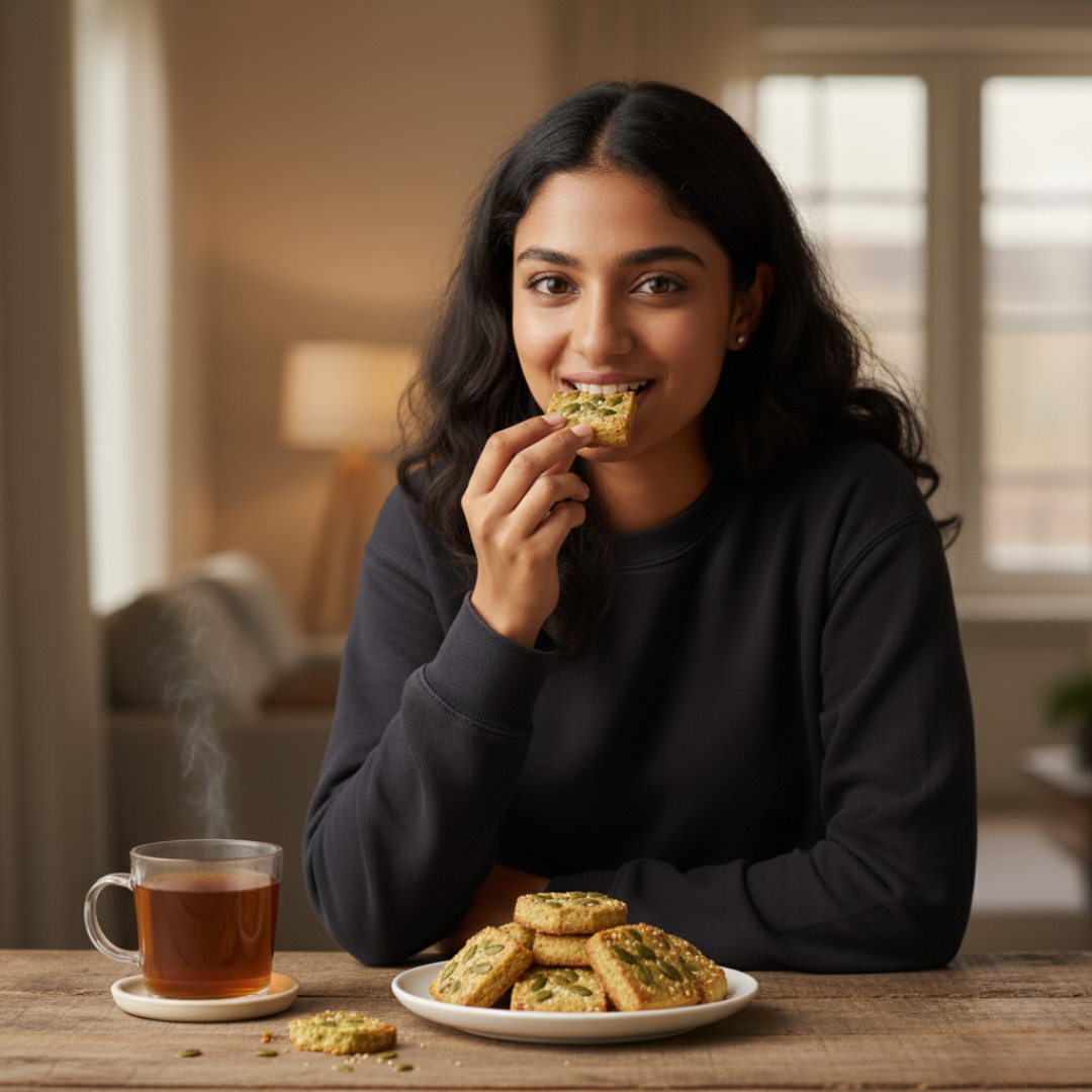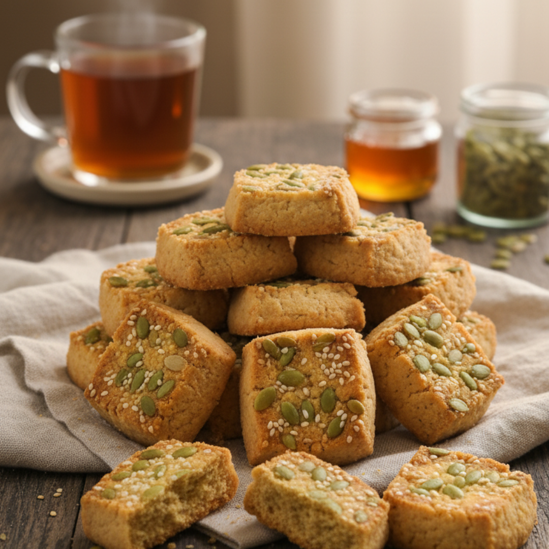 Our Wholesome Seed Cookies are crafted with love and care using a selection of high‑quality seeds with wholesome flour, butter and just the right amount of sweetness. Each cookie delivers a satisfying crunch that melts into a nutty, rustic flavor — ideal for those looking for a light but flavorful snack. Whether you are munching with tea, gifting to someone health‑conscious, or simply craving a balanced treat, this cookie offers a delightful mix of taste, health and comfort. Made without preservatives and baked fresh, it’s a snack you can trust and enjoy anytime.
